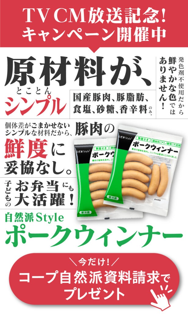 コープ自然派は発色剤だけではなく、「安全性に疑いのある食品添加物は使用しない」「必要のない食品添加物は使用しない」とする食品添加物の自主基準を設け、素材本来の味わいを生かすことを大切にした商品づくりを行っています。