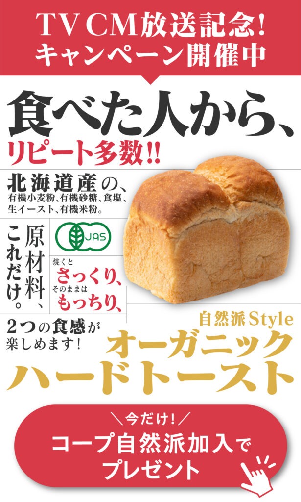 コープ自然派は、「国産小麦でつくったおいしいパンが食べたい!」という組合員さんの声から、自前のパン工房を設立!「おいしいパンづくりは幸せづくり」をスローガンに、おいしいパンを組合員さんのご自宅までお届けしています。