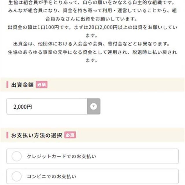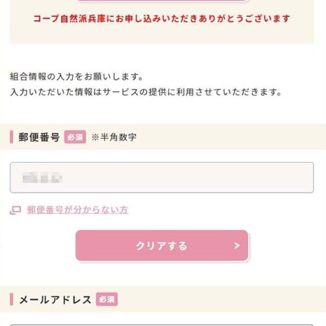 - コープ自然派おためしセット申込フォーム(兵庫)